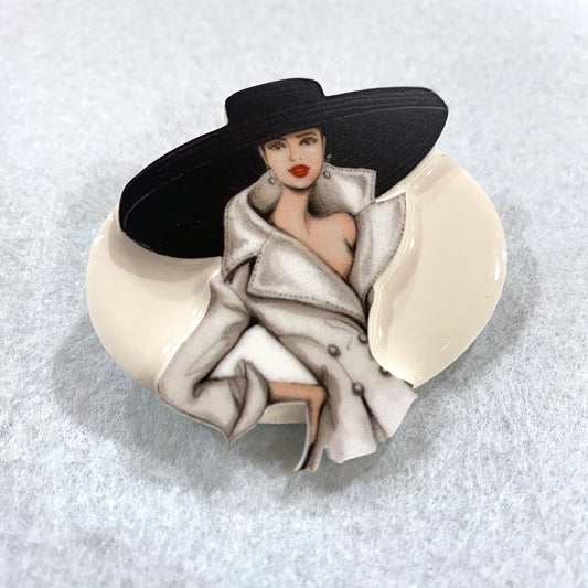 Broche blanche "La Dame au Chapeau"