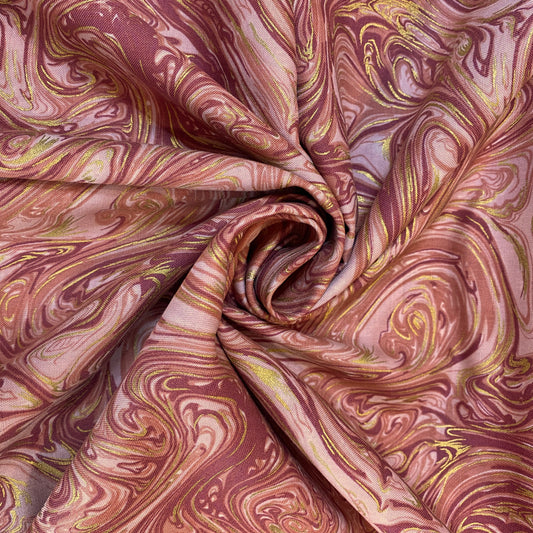 Tissu coton marbré rose et or