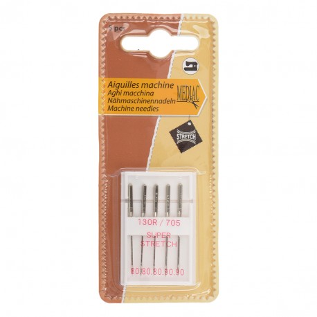 Ce lot est composé de 3 aiguilles taille 80 et 2 aiguilles taille 90. Ces aiguilles possèdent un bout arrondi pour coudre facilement toute matière très élastique sans sauter de point.