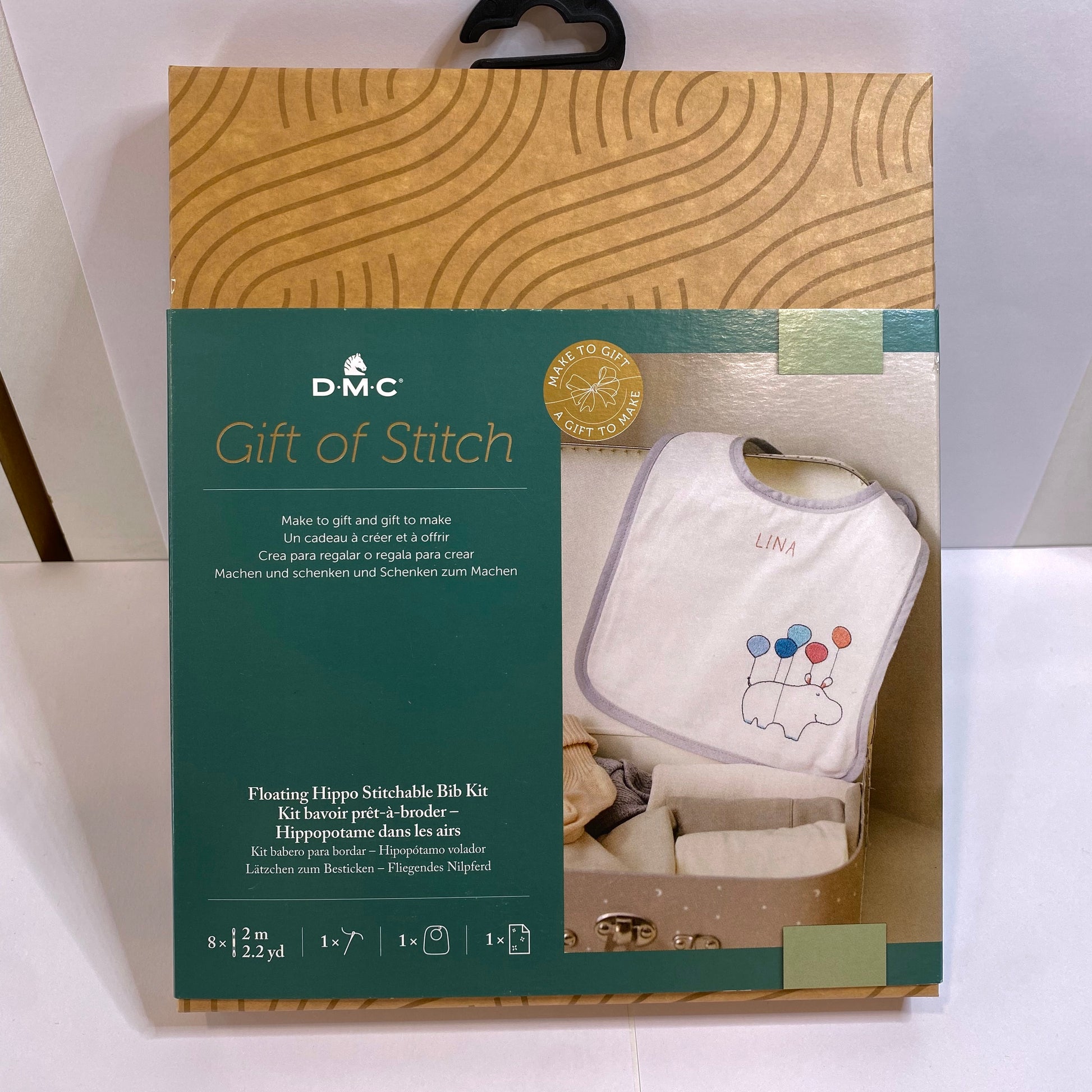Kit bavoir à broder DMC Hippopotame dans les airs - broderie traditionnelle.