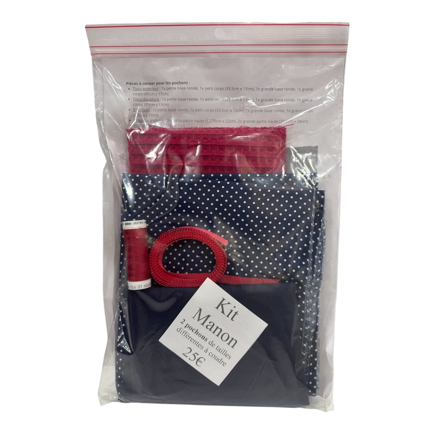Découvrez le Kit Couture Manon, parfait pour réaliser deux magnifiques pochons assortis en toute simplicité. Ce kit débutant contient tout le nécessaire pour coudre sereinement sans calculs ni préparation préalable.