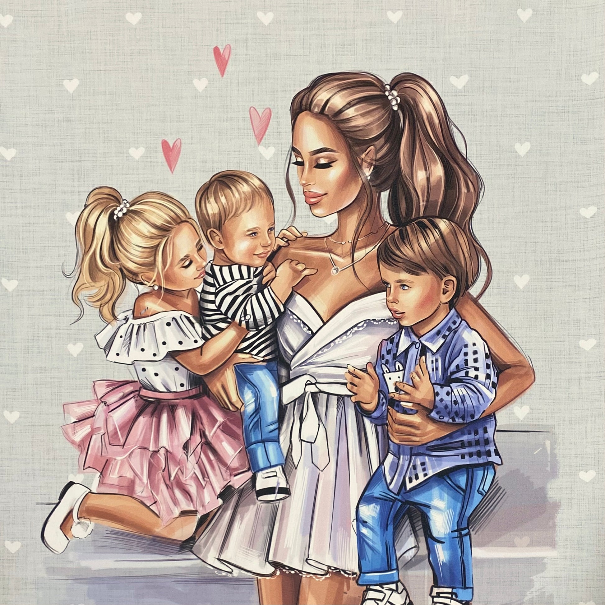Panneau simili cuir imprimé famille : maman, 2 garçons et une fille. Ce panneau est idéal pour réaliser un sac, un coussin, un dos de veste ou encore en appliqué. Il vous permettra de réaliser des ouvrages uniques et personnalisés.