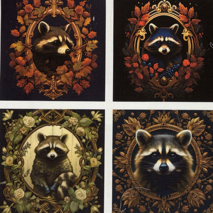 Panneaux 100% coton Raton Laveurs Cadre![]()