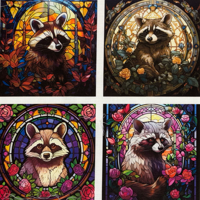 Panneaux 100% coton Raton Laveurs Vitraux![]()