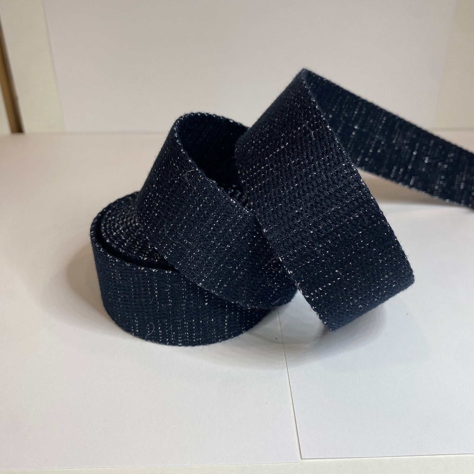 Sangle polyester unie dotée d'un fil lurex argenté. Personnalisez vos sacs, vanity, trousses de voyages grâce à ces sangles originales. La présence de lurex donne un aspect girly élégant qui soulignera vos créations.