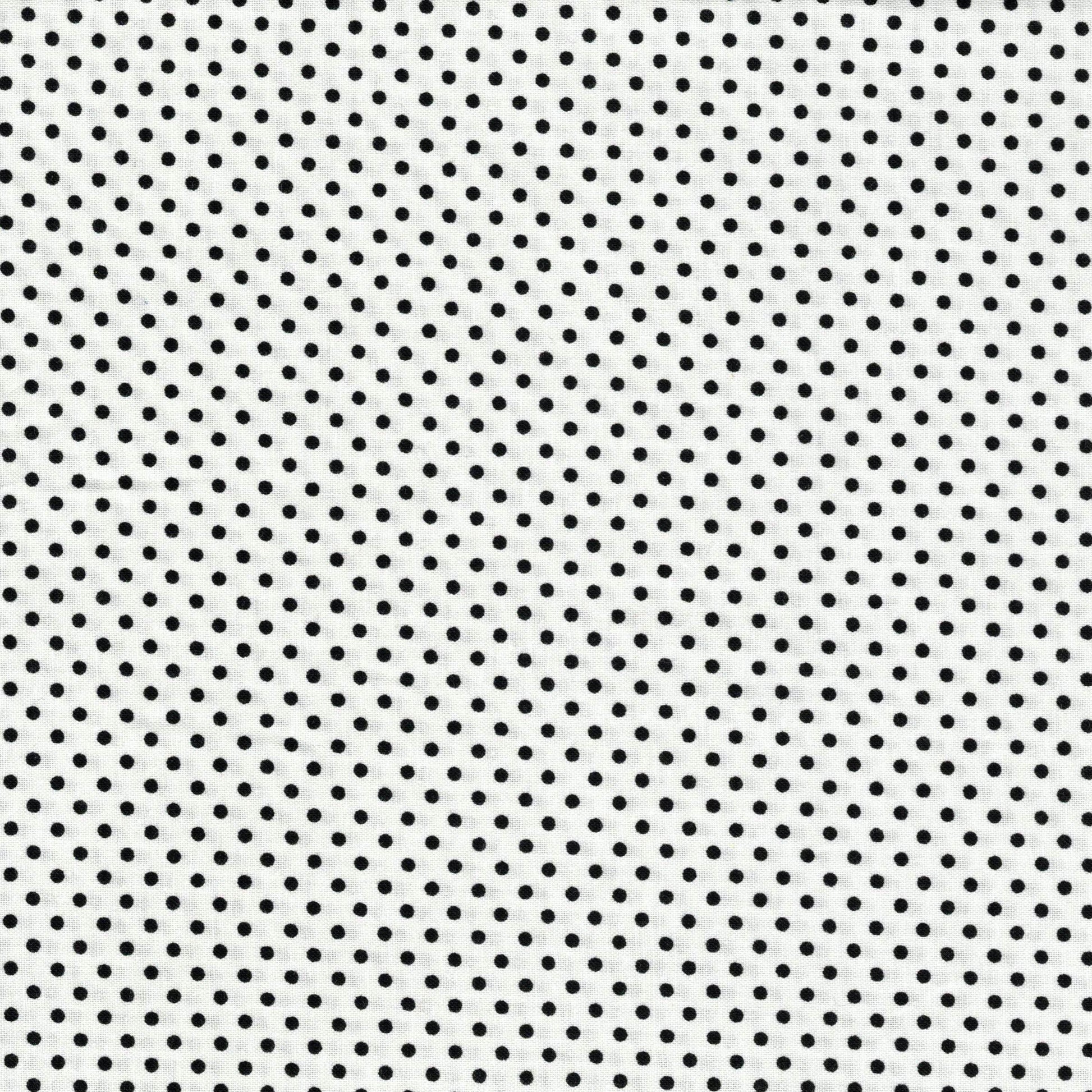 Tissu en 100% coton blanc à pois noirs. Il est idéal pour la réalisation d'accessoires : sacs, trousses, taies d'oreiller,... comme pour la réalisation de vêtements : robe, chemisier, top,... C'est un coton tissé serré, il est donc un peu plus épais et plus résistant que la popeline de coton. Il peut aussi être utilisé pour faire du cartonnage.