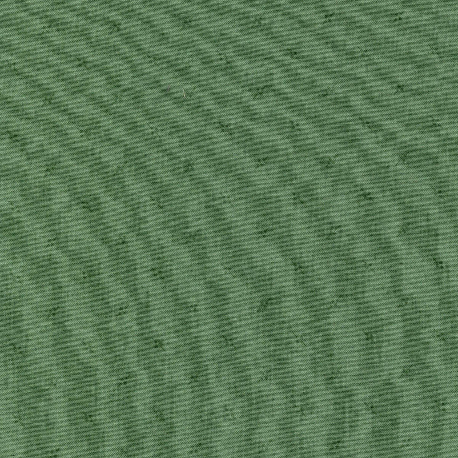 Tissu en 100% coton à petit imprimé vert. Il est idéal pour la réalisation d'accessoires : sacs, trousses, taies d'oreiller, sacs à tarte, tabliers... comme pour la réalisation de vêtements : robe, chemisier, top,... C'est un coton tissé serré, il est donc un peu plus épais et plus résistant que la popeline de coton. Il peut convenir pour le cartonnage.