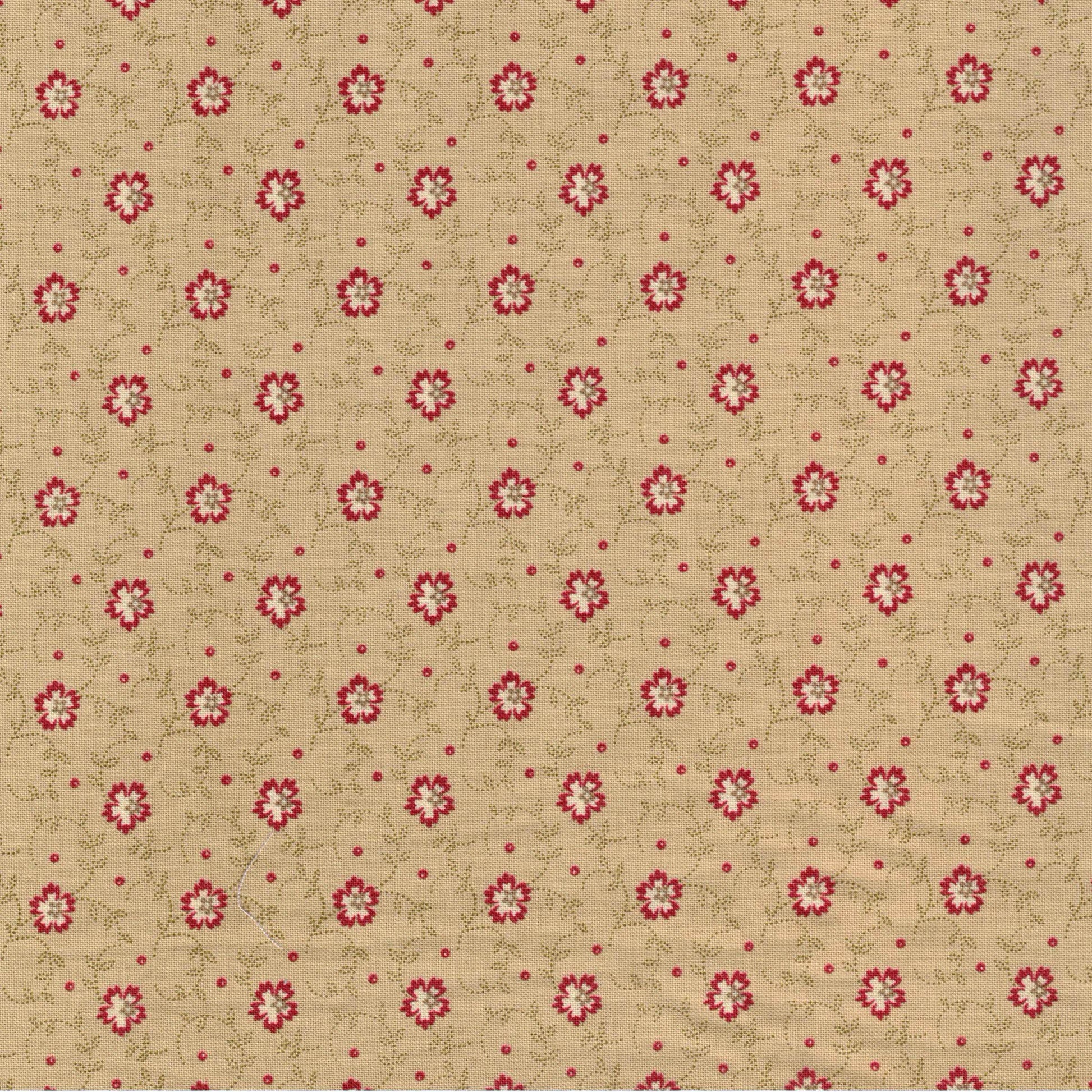 Tissu en 100% coton à imprimé petites fleurs rouges. Il est idéal pour la réalisation d'accessoires : sacs, trousses, taies d'oreiller,... comme pour la réalisation de vêtements : robe, chemisier, top,... C'est un coton tissé serré, il est donc un peu plus épais et plus résistant que la popeline de coton.