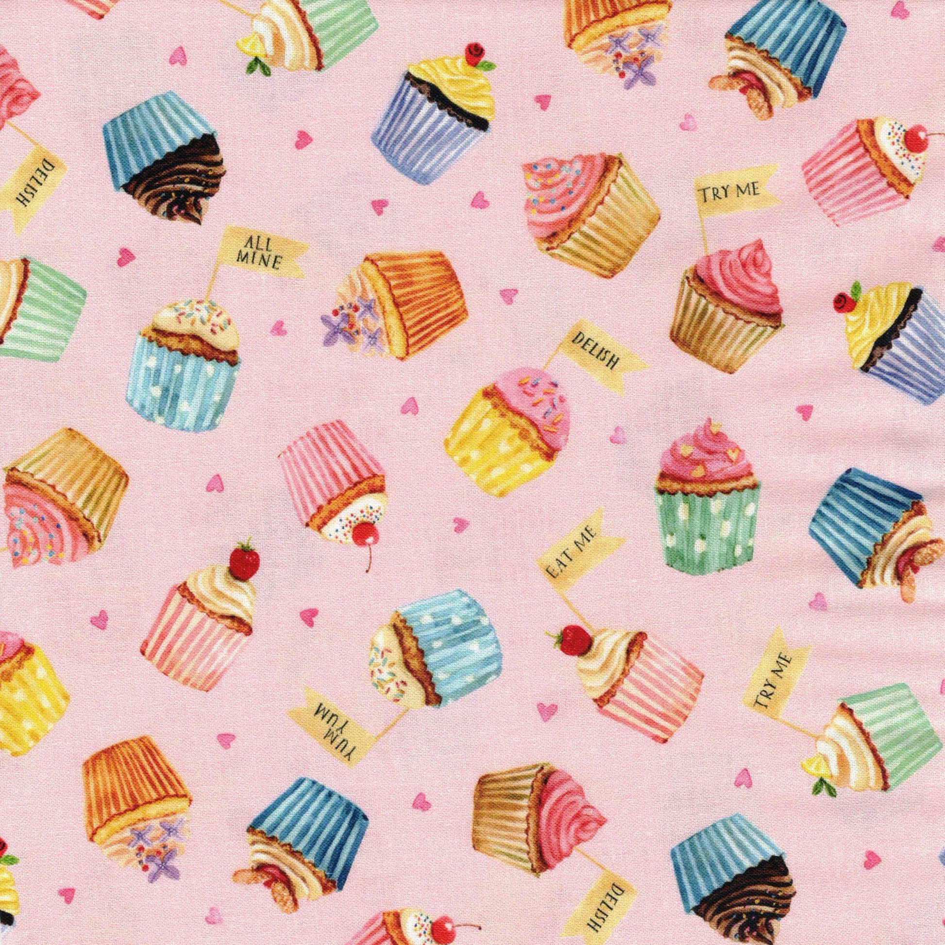 Tissu en 100% coton à imprimé muffins. Il est idéal pour la réalisation d'accessoires : sacs, trousses, taies d'oreiller, sacs à tarte, tabliers... comme pour la réalisation de vêtements : robe, chemisier, top,... C'est un coton tissé serré, il est donc un peu plus épais et plus résistant que la popeline de coton.