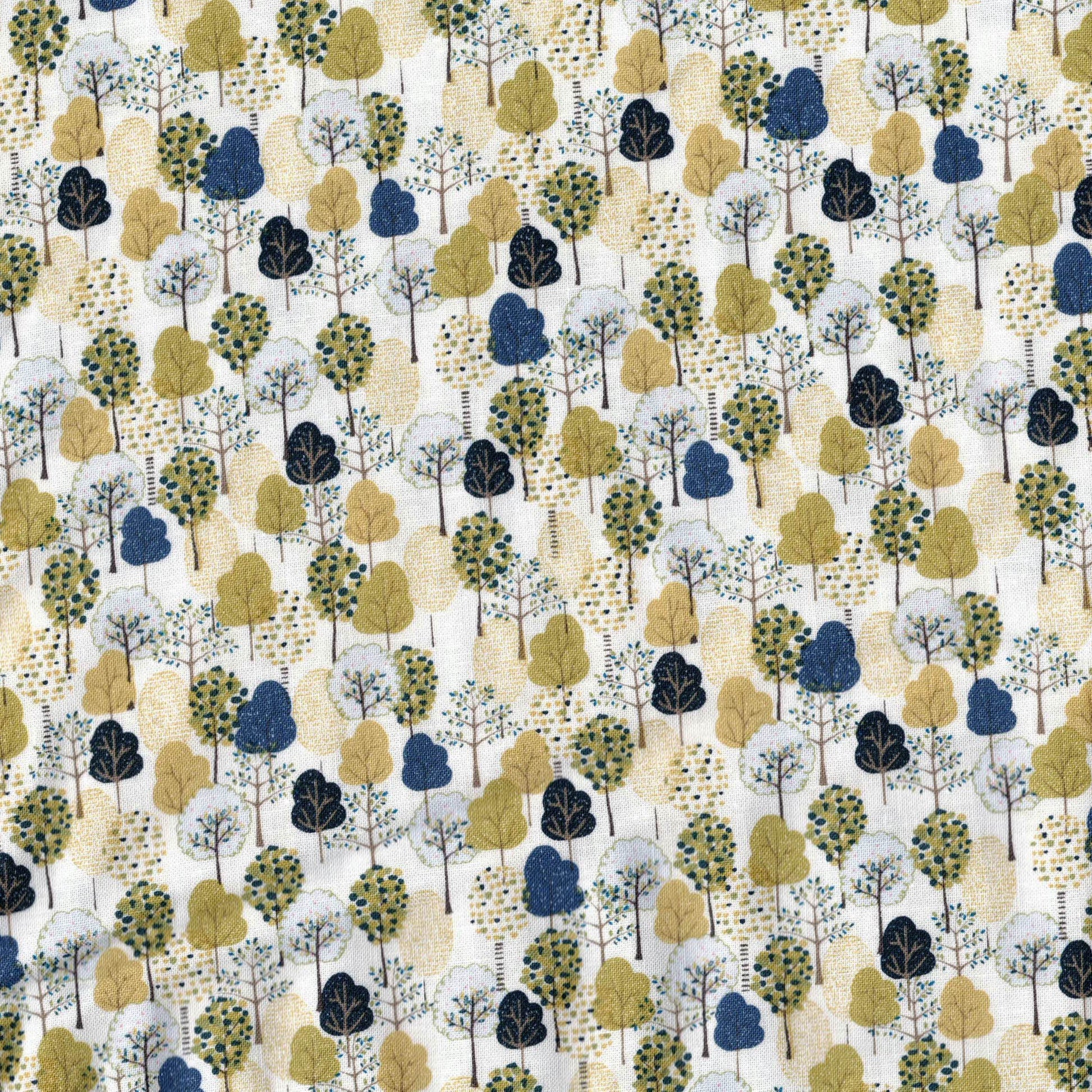 Tissu en 100% coton blanc à imprimé petits arbres. Il est idéal pour la réalisation d'accessoires : sacs, trousses, taies d'oreiller,... comme pour la réalisation de vêtements : robe, chemisier, top,... C'est un coton tissé serré, il est donc un peu plus épais et plus résistant que la popeline de coton.