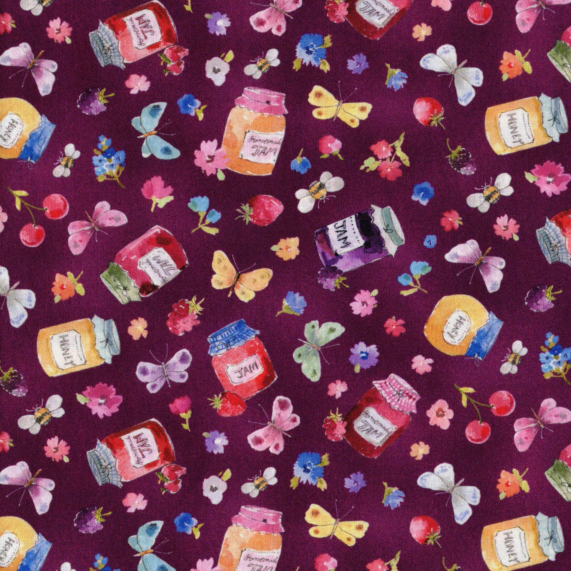 Tissu en 100% coton à imprimé pots de confiture. Il est idéal pour la réalisation d'accessoires : sacs, trousses, taies d'oreiller, sacs à tarte, tabliers... comme pour la réalisation de vêtements : robe, chemisier, top,... C'est un coton tissé serré, il est donc un peu plus épais et plus résistant que la popeline de coton.