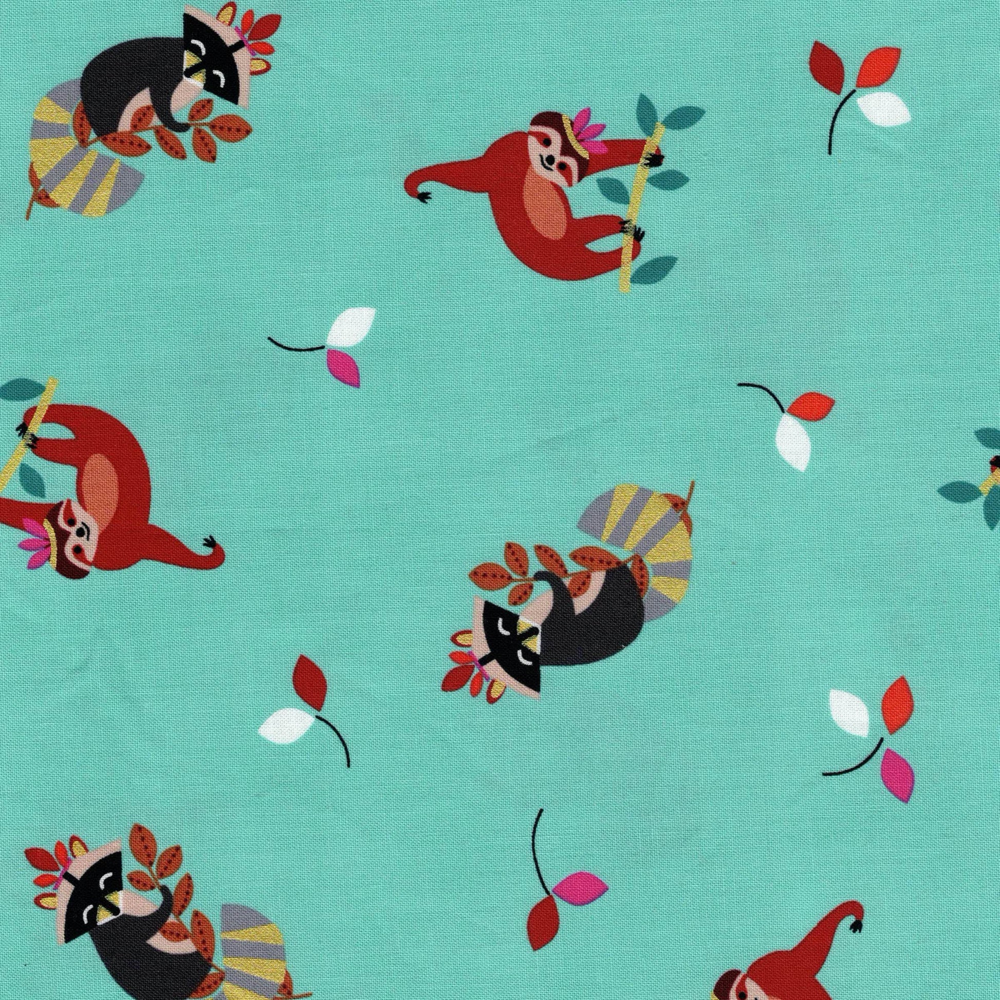 Tissu en 100% coton à imprimé ratons laveurs et paresseux. Il est idéal pour la réalisation d'accessoires : sacs, trousses, taies d'oreiller,... comme pour la réalisation de vêtements : robe, chemisier, top,... C'est un coton tissé serré, il est donc un peu plus épais et plus résistant que la popeline de coton.