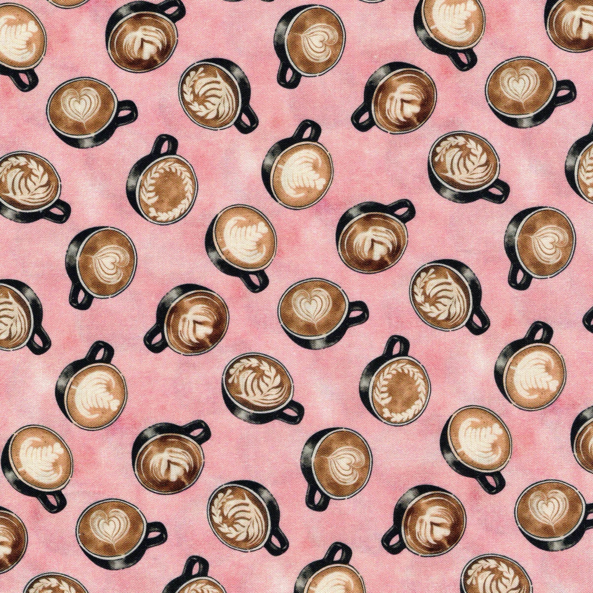 Tissu en 100% coton à imprimé tasses de café. Il est idéal pour la réalisation d'accessoires : sacs, trousses, taies d'oreiller, sacs à tarte, tabliers... comme pour la réalisation de vêtements : robe, chemisier, top,... C'est un coton tissé serré, il est donc un peu plus épais et plus résistant que la popeline de coton.
