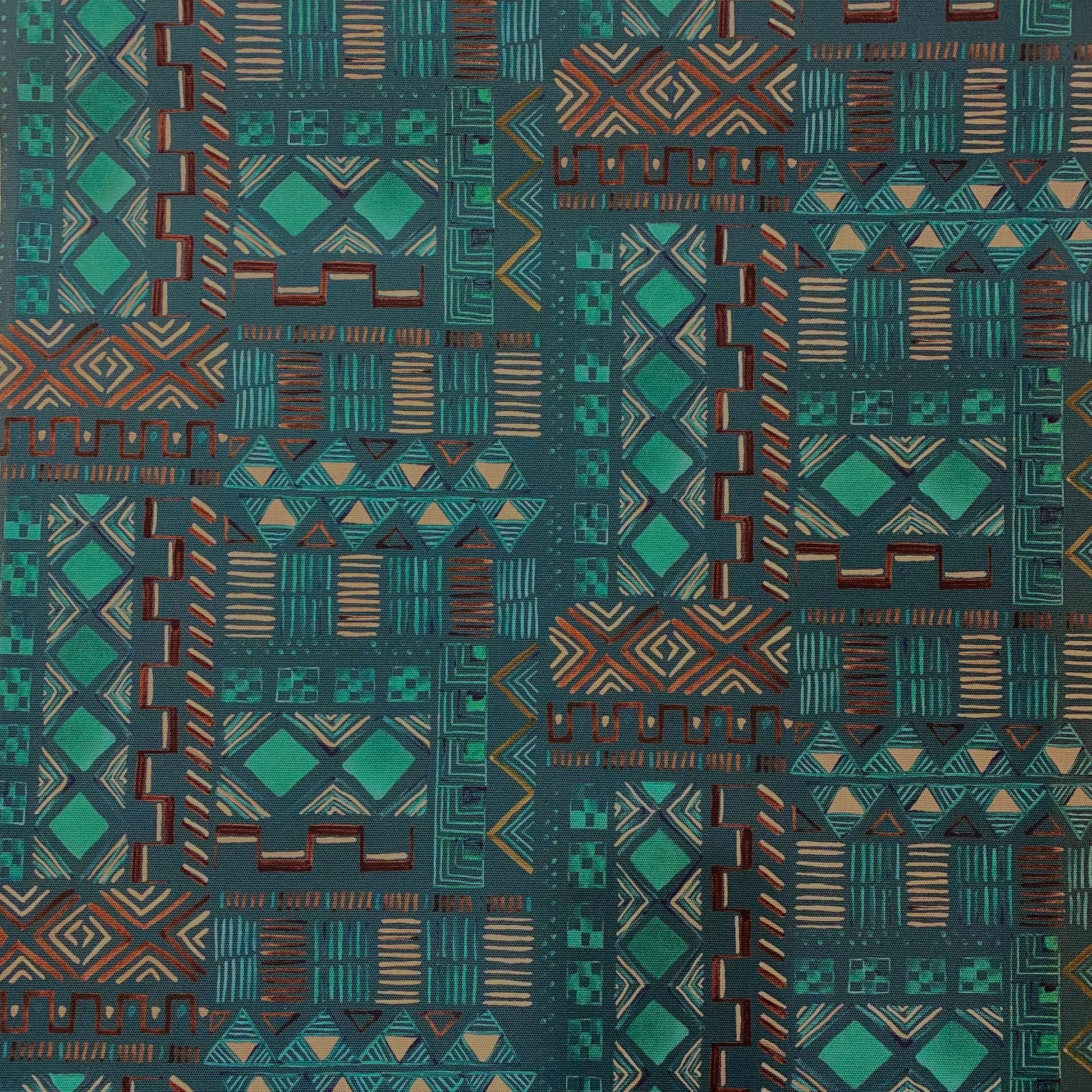 Toile à transat imprimé aztèque. Ce tissu est un tissu technique qui est dédié à la réalisation de transat. Il peut aussi être employé dans d'autres circonstances mais il est déconseillé de le couper dans la largeur aux risques que le tissage ne se défasse, donc si vous souhaitez l'utiliser pour faire un sac par exemple, il faudra le laisser en largeur complète afin de ne pas le fragiliser.