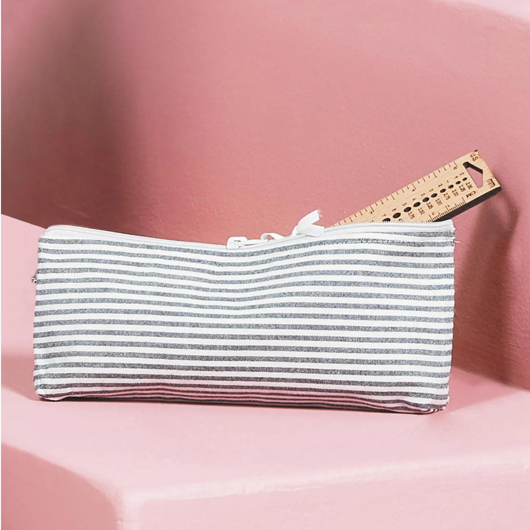 Une tousse fabriquée en France, en exclusivité pour Bergère de France. Vous y rangerez, ciseaux, accessoires, stylos, feutres... Zippée cette trousse est réalisée dans un tissu rayé en coton et viscose doublé lin ciré. Vous pourrez aussi trouver un sac à tricot assorti ainsi qu'un trousseau pour ranger les aiguilles. Dimensions 22 x 8 x 3 cm.